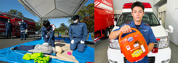 ◇「緊急時体験ブース~緊急時の対応を消防隊・救急隊に学ぼう!~」