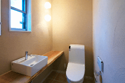 麻生グラウンドのトイレ(フラッシュクリーン®使用)写真左 ご自宅トイレへのフラッシュクリーン®塗布イメージ写真右 フラッシュクリーン®は、ウイルス・細菌・花粉などを分解する抗菌物質「光触媒チタンアパタイト」と、湿気や臭いを吸着しコントロールする調湿物質「珪藻土」のダブルの力で、お部屋をクリーンにすることができる、カラダに優しい商品です。