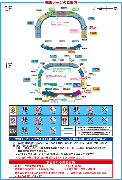 ※大旗(Lサイズフラッグ[1,015×1,575mm]を超えるサイズ)の使用は、「ビジターA自由(立見)」に限り使用可能とします。