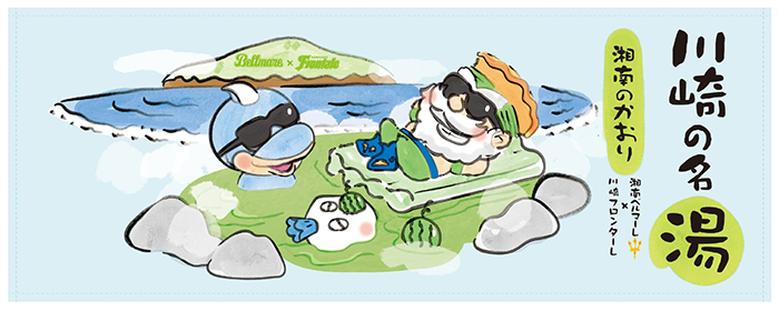 湘南の海!いや、おフロ(風呂)!?に入ったマスコットたちがデザインされたフェイスタオルです!