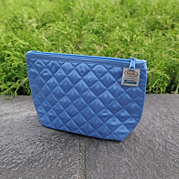 フロンターレブルーのマルチポーチ。収納量に合わせてマチを広げたり、折りたたんだりして使用できます。ちょっとした小物ポーチや、化粧ポーチとしてオススメ!! NaRaYaとのコラボ織ネーム付き。
