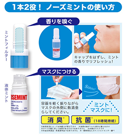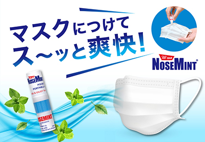 ノーズミントは爽快ミントの香りで気分もリフレッシュ!! メンソールのすっきり感にペパーミントオイル、ユーカリオイル、ラベンダーオイルをブレンドしており、香りと楽しむのはもちろん、マスクにつけてミントマスクとしても使用できます。世界25か国で5億本を売り上げている商品です。