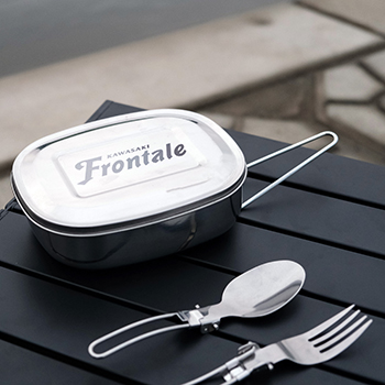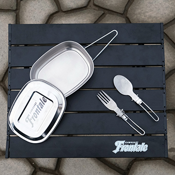 直接、火にかけての調理が可能なクッカーと、折りたたみが可能なスプーンとフォークの3点セット。流行りのキャンプに行く時はフロンターレデザインのグッズを使って楽しみましょう!!