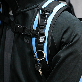 ドイツのアパレルパーツメーカー「フィドロック(FIDLOCK)」のマグネット式バックルを採用したカラビナ。使ってみたら分かるカチッという音が特徴的で、外す時は指でバックルをスライドさせるだけの快適な商品。また、はめる時はマグネットが使用されているため、近づけるだけでバックルが締まる便利な仕様です。