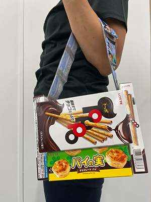 ロッテのお菓子だけを使った驚きのバック作り体験を行います。作ったバックはお家に持ち帰って、美味しく食べましょう!!