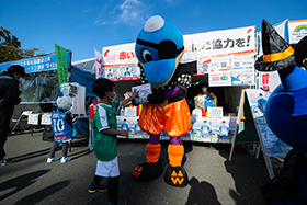 本会では、これからの地域福祉を推進していく上で、地域密着型の活動を展開している組織・団体との協働は不可欠であると考え、平成20年度から川崎市域を中心とした共同募金事業を推進していくために、川崎フロンターレとの協働を開始しました。知名度の高さはもとより、これまで「川崎フロンターレ」がさまざまな市民活動を積極的・継続的に取り組んでいることから、共同募金の募金・広報活動においても、極めて大きな成果が得られています。全国で初めての取り組みとなった川崎フロンターレとの協働事業は、県内はもとより他県の共同募金運動でも、プロスポーツチームとの協働事業に発展するなど、全国的な広がりを見せています。