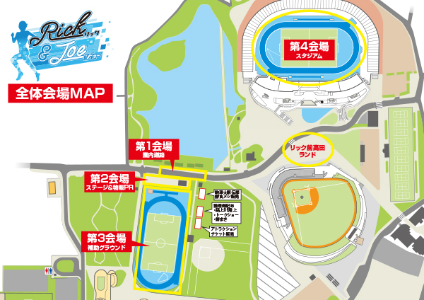 当日Rick&Joeイベントへの参加は、ブース混雑緩和のため各ブースでのチケット発券は行わず、補助グラウンド横【多目的広場】に設置したチケット販売ブースにて5枚のアトラクションチケットが1綴りになった「アトラクションチケットセット」を500円にて8:30から事前販売します。