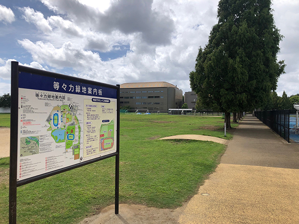 今回の会場はスタジアム前園内道路を多摩川方面に行き、釣り堀の向かい側にある400mトラック完備の補助グラウンドがメインとなります。