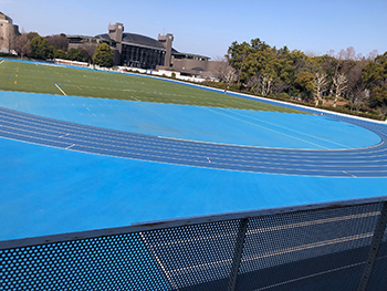 園内道路にモバイルタータンを敷き、沿道にて観覧してもらう「道路DE陸上」を開催!