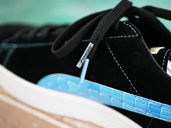 フォームストリップとインソールには、フロンターレと深い繋がりのある風呂(フロ)のタイルからインスピレーションを受けた今シーズンのユニホームのグラフィックがプリントされています。シュータンにはフロンターレのロゴ入りの特別な織ネームが採用され、インソールには、フロンターレ、atmos、プーマのロゴがプリントされたクラブ設立26(フロ)周年のアニバーサリーイヤーを記念するにふさわしいこだわりの一足に仕上がっています。