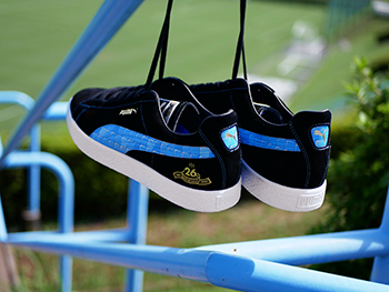 PUMA×atmos×FRONTALEの初コラボが決定!! 川崎フロンターレ26周年を記念し、オリジナルのコラボスニーカーを販売いたします。
