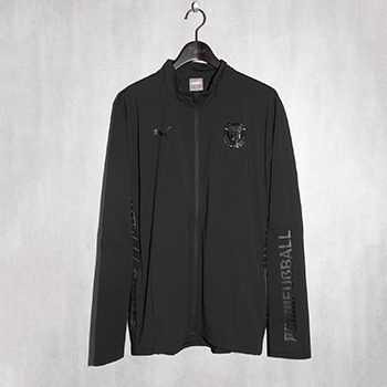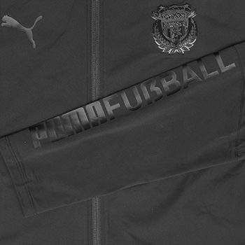 細身のシルエットながらもストレッチ素材で動きやすいジャケット。シンプルかと思いきや、脇にはグラフィックをプリント。フルジップ仕様でさっと気軽に羽織れるのも魅力のひとつです。9月30日(金)に発売した「PUMA FUSSBALL HYBRID LSシャツ」と「PUMA FUSSBALL HYBRIDショーツ」に合わせて着用可能。