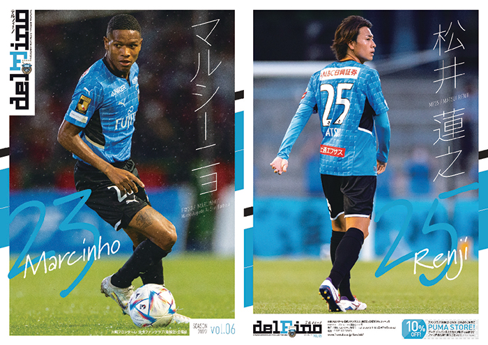 今回は爆発的なスピードと軽やかな身のこなしを武器に左サイドを突破し、自らもフィニッシュに絡むマルちゃんことマルシーニョ選手が第1特集に登場。第2特集では今シーズン法政大学より加入し、ACL・天皇杯では持ち味の対人戦の強さを発揮したレンジこと松井蓮之選手の選手寮に潜入します。