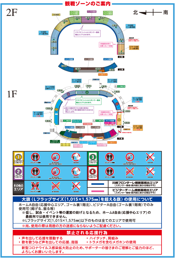 ※大旗(Lサイズフラッグ[1,015×1,575mm]を超えるサイズ)の使用は、「ビジターA自由(立見)」に限り使用可能とします。