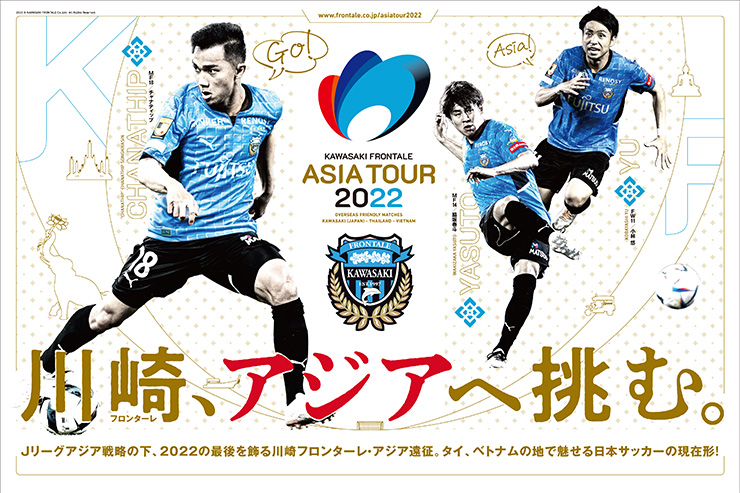 川崎フロンターレでは、タイ王国とベトナム社会主義共和国の2国において「川崎フロンターレアジアツアー2022」に挑みます。タイではJリーグ・タイリーグが主催する「2022 Jリーグ アジアチャレンジinタイ」に参加し、タイリーグのBGパトゥム・ユナイテッド、Jリーグの北海道コンサドーレ札幌と対戦します。またベトナムでは、日越外交関係樹立50周年記念として、ベトナムリーグのベカメックス・ビンズンFCと対戦します。