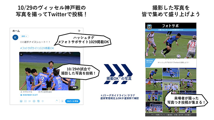 ※上記の方法で投稿することにより、フォトサポおよび川崎フロンターレ公式サイトへの掲載、ならびにフォトサポ利用規約およびJリーグが定めるガイドラインに同意したものとみなします。