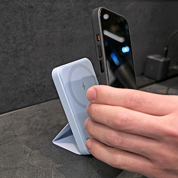 マグネット式ワイヤレス充電機能を搭載し、外出時にケーブルを使わずに充電が可能です。約900gの荷重に耐える強力マグネットでズレることなく安定して充電できます。また過電圧保護や電子回路のショート防止、温度管理などのAnker独自の多重保護システムにより、長く安全にお使いいただけます。