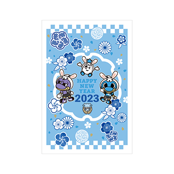 ふろん太とカブレラ、ワルンタが2023年の干支である“癸卯”になったデザイン。フロンターレサポーター同士だけでなく、まだフロンターレに興味がないという方にも送って、フロンターレ普及活動をお願いします!