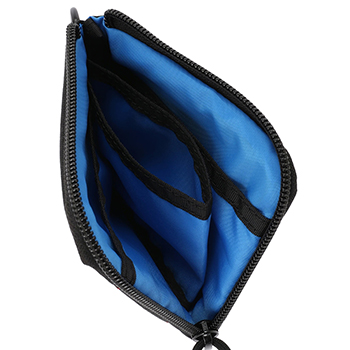 フロンターレブルーをイメージした鮮やかな内装が目を引くコンパクトウォレットです。収納部は大きく開き、出し入れしやすいL字ファスナーを採用。中央に小銭入れを配し、両サイドには2つ折りに畳んだお札も収納可能です。内部には頻繁に使用するカード類の収納に便利なポケットが備わっており、最低限のアイテムをスッキリと収めることができます。