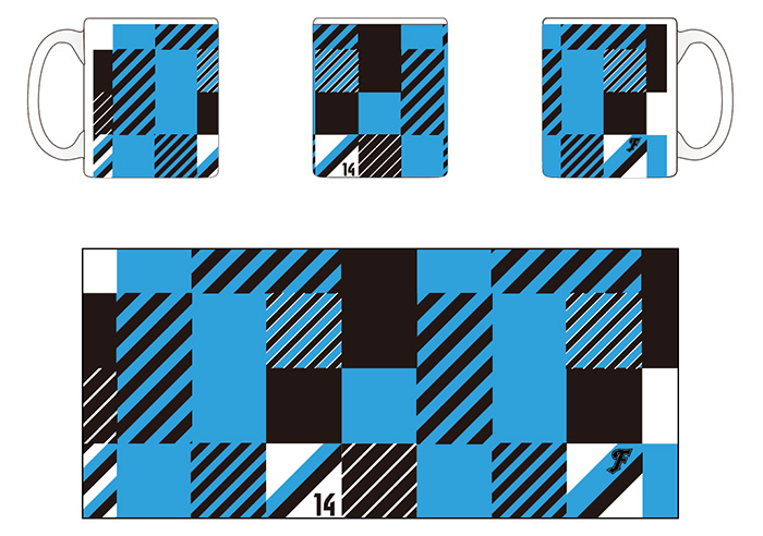 2023ユニフォーム撮影時の背景デザインを採用したマグカップです。Fの文字と各選手の番号を小さく入れました。