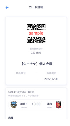 デジタル会員証が正しく表示されるか、対象の試合が譲渡/分配済みになっていないかご確認の上、ご来場ください。