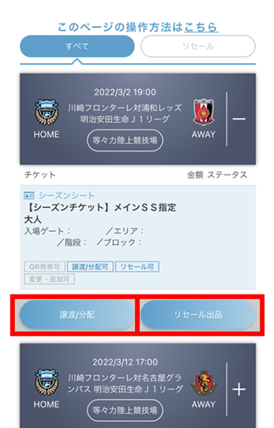 A:チケット一覧からシーズンチケットのQR発券はできません。入場の際は、デジタル会員証をご利用ください。こちらのチケット一覧からは、譲渡/分配・リセールのみがご利用いただけます。譲渡/分配・リセールの方法については、情報シールをお送りした際に同封しておりますパンフレットの7・8ページをご確認ください。