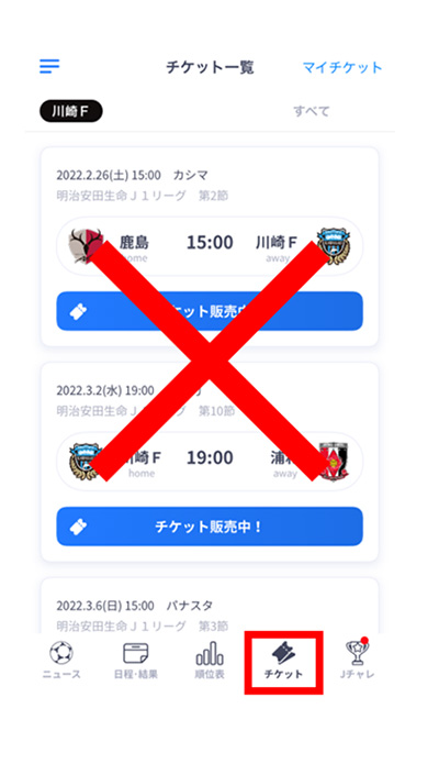 Jリーグチケット(チケフロ)内の「チケット一覧」からQR発券することはできませんのでご注意ください。