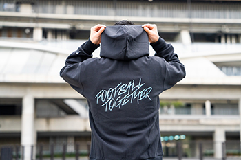 等々力まで向かうサポーターの姿から着想を得た一着。フロントジップ仕様となっているため、ユニフォームの上から着用しても、中を隠さず防寒、日除けにもなる一着です。