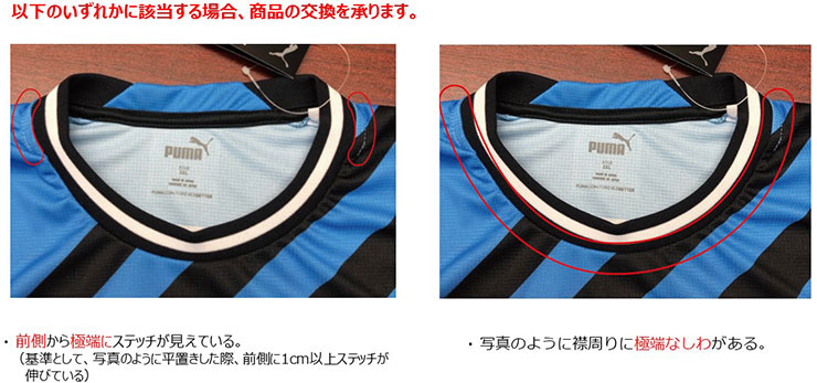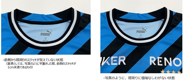 「2023 川崎フロンターレ 1st ユニフォーム」の縫製の不具合箇所(良品と不良品)
