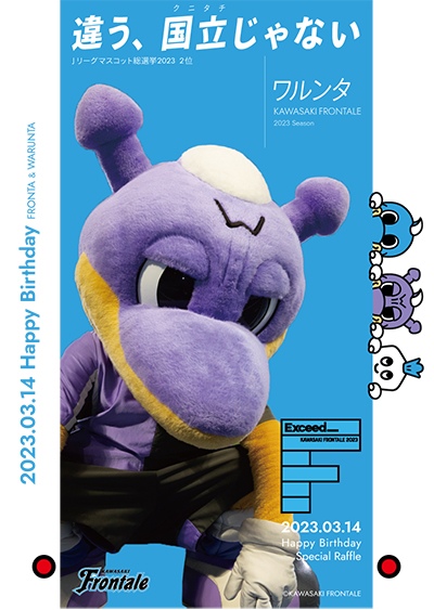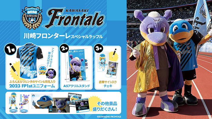 川崎フロンターレでは、今シーズンも大好評のRaffle(ラッフル)とのコラボオンラインくじ第2弾を実施しますのでお知らせいたします。今回は誕生日を迎えるふろん太とワルンタにスポットを当てました! ぜひご参加ください!!