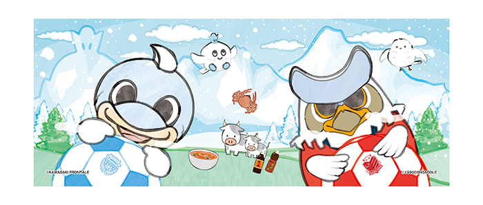 コラボグッズ定番品のキーホルダーも製作いたしました! フロンターレサポーターの皆さんだけでなく、北海道コンサドーレ札幌サポーターの皆さんにも手に入れていただきたい一品です。