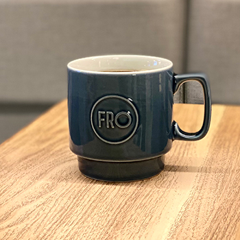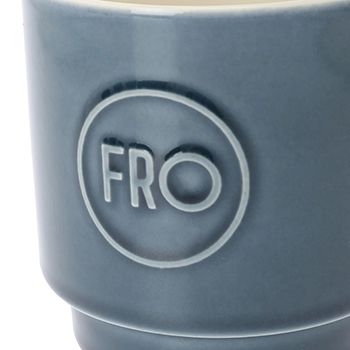 落ち着いたブルーの色味は日常で使うにはピッタリの1品です。岐阜県の美濃焼で一つ一つ丁寧に製作しております。手作業による製作の為、FROロゴに若干の個体差があるのも良さの一つです。