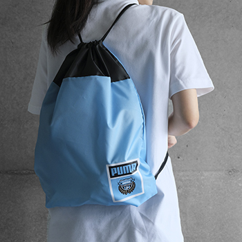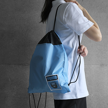 フロンターレブルーとブラックのツートンカラーとなっている別注ジムサック。ホームゲームの時だけでなく、学校や運動をする時の荷物入れとしても最適です。