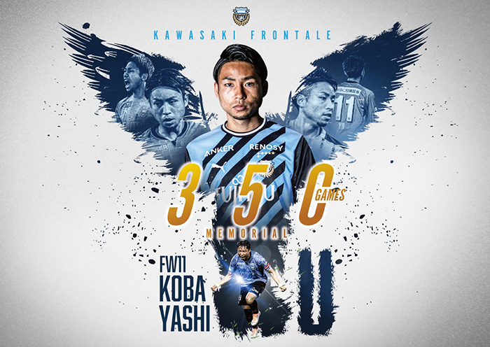 川崎フロンターレでは、3月18日(土)セレッソ大阪戦にて小林悠選手がJ1通算350試合出場を達成したことを記念して、小林悠選手「J1通算350試合出場メモリアルグッズ」を受注販売することとなりましたので、お知らせいたします。