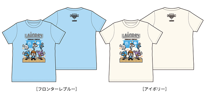 ランドリーのキャラクターとフロンターレマスコットがおフロ(風呂)上がりに牛乳を飲んでゆっくりとしている様子が可愛い一着です。また、今年はユニフォームカラーに合わせてアイボリーも販売いたします。