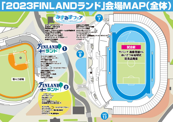 この日の試合は19時キックオフですが、FINLANDランドはキックオフ6時間前の13:00スタート(テントサウナは何とキックオフ10時間前の9:00!)。