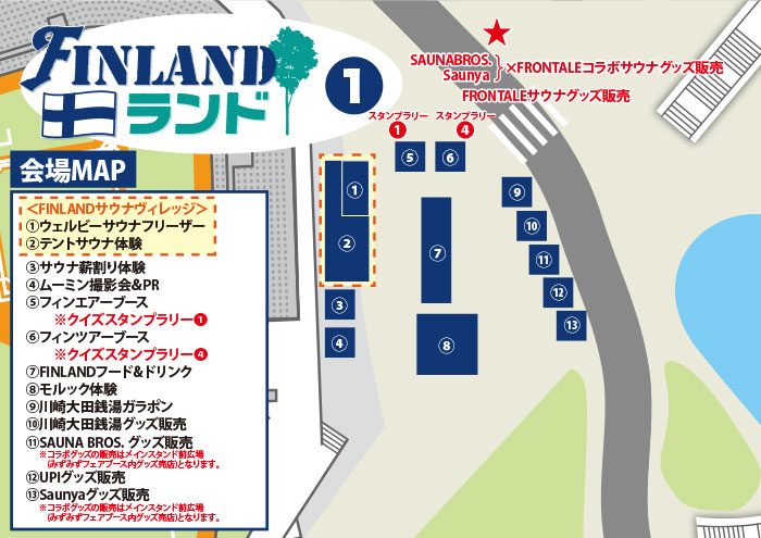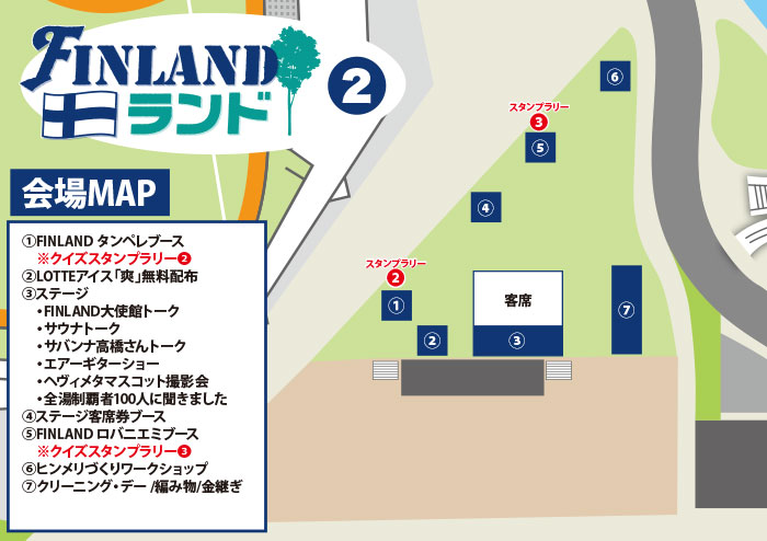 | 場所 | 野球場前広場「FINLANDランド・FINLANDサウナヴィレッジ」 |