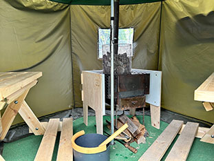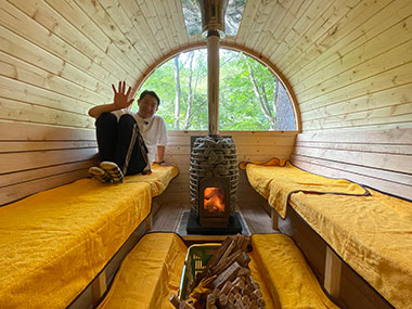 昨年はフィンランド製テントサウナ「SAVOTTA」4基を設営し「電気ストーブ」での「テントサウナ」を体験いただきましたが、今年は「薪ストーブ」に変更し、極上の室温をキープしたサウナをご提供いたします! 4人用の小テントは2基に変更し、その代わりに8人が一度に入れる大テントサウナ1基を設置。この大テントサウナでは多彩なアウフギーサー(熱波師)によるアウフグースサービスを実施いたします。