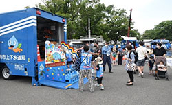 今日は、いつもいる水処理センターから、みずみずフェアに出張中。はりきって働くから、みんな会いに来てね!