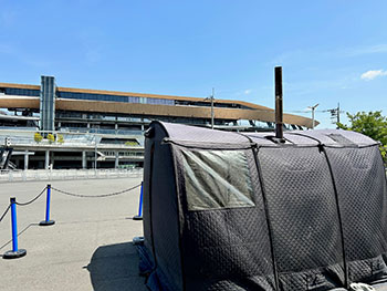 また今回のサウナヴィレッジには全国有数のサウナ施設を展開する「ウェルビー」所有・薪サウナ&冷凍サウナを搭載した「サウナフリーザー」も設置! 小テント、大テント、サウナフリーザーの3種のサウナで蒸された後、リクライニングチェアに身をゆだね、等々力競技場を愛でながらととのっていただきます。もちろん更衣室、シャワールーム、水風呂も完備!