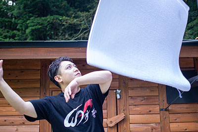 8人収容可能な大テントサウナにてアウフグースサービス(熱波)を実施!