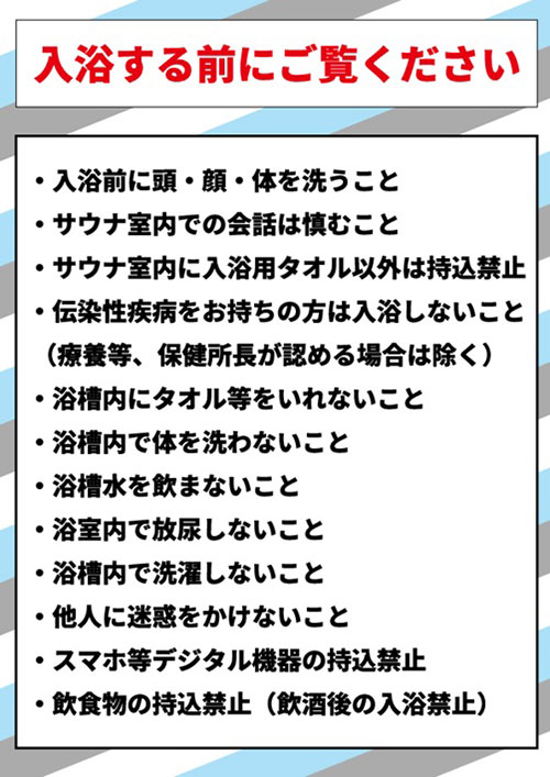 | 注意事項 | ◇申込・入浴前に必ず下記注意事項をご確認ください。