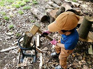企画3 子どもでも楽しく!安全に!できる器具を使ってサウナ薪割り体験!