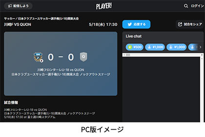 今シーズンもフロンターレアカデミーの選手たちの戦いぶりをタイムリーに皆さんにお届けするため、スポーツライブエンターテイメントアプリ「Player!」にて試合速報を実施します。