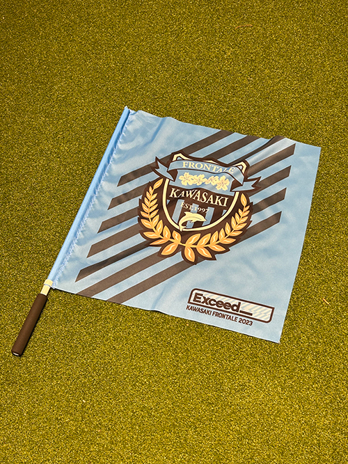 この“フラッグ”をブンブン振って、声だけでなく色でも声援を送るグッズとして1,000円(声援)価格とさせていただきました。アウェイのスタジアムもフロンターレブルーで染めて、等々力競技場と同じ雰囲気を作り上げましょう!