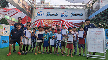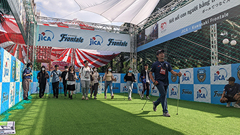 スポーツフェスティバルでは、川崎フロンターレが国際協力機構(JICA)と共同でブースを出展し、日本でのノウハウを活かした健康増進プログラムとして「ポールウォーキング教室」、実際に身体を動かして算数を学ぶ「算数ドリル実践授業」、大人向けの「シェイプアップサッカー教室」、「走り方教室」「チアリーディング教室」等を実施いたします。