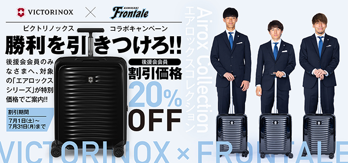 2008年から16年にわたってキャリーバックをご提供いただいているクラブパートナーのビクトリノックス(Victorinox)様から、川崎フロンターレ後援会会員限定のスペシャルクーポンをご用意いただきました!!