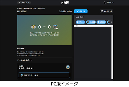 今シーズンもフロンターレアカデミーの選手たちの戦いぶりをタイムリーに皆さんにお届けするため、スポーツライブエンターテイメントアプリ「Player!」にて試合速報を実施します。