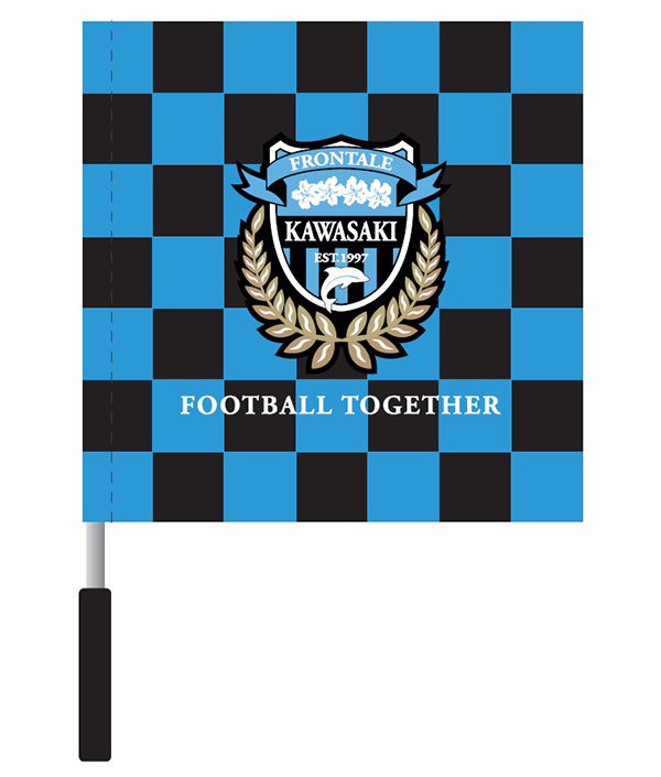 7月8日(土)は「川崎市制記念試合Fサーキット」ということでフロンターレカラーを使用し、チェッカーフラッグをイメージしたデザインに仕上げました! “フラッグ”をブンブン振ってスタジアムをフロンターレブルーに染めましょう!! 声だけでなく、色でも声援を送るグッズとして1,000円(声援)価格とさせていただきました。