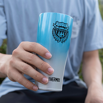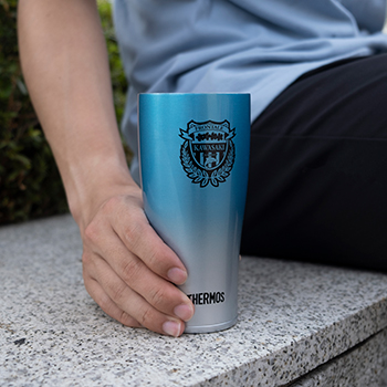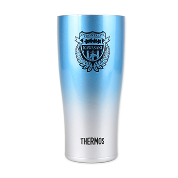おいしい温度が長持ちするフロンターレオリジナルデザインのサーモス真空断熱タンブラーです。魔法びん構造なので氷が長持ちし、飲み物が薄まりにくく、冷たい飲み物をおいしく楽しんでいただけます。また、熱い飲み物を入れても外側が熱くなりません。結露もしにくいのでテーブルを汚さず、ご自宅やオフィス、サッカーの試合観戦など幅広いシーンで活躍します。